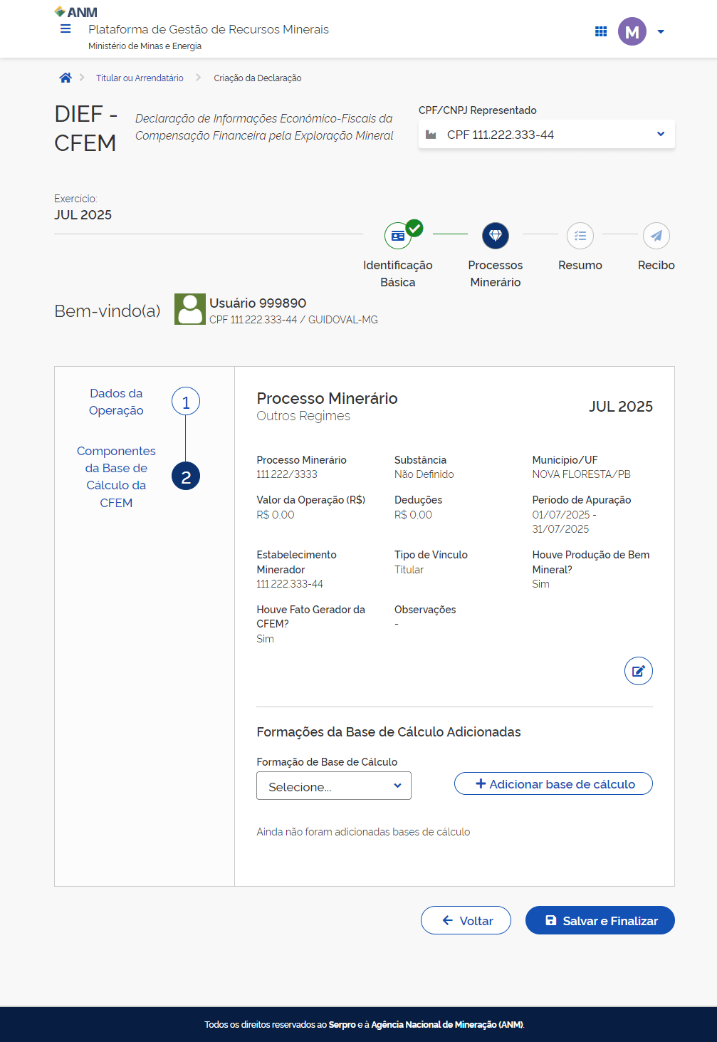 Para incluir uma nova Base de Cálculo do tipo Balneário, certifique-se que está na operação desejada conforme demostrado na demonstração: Incluir Operação Concessão/Licenciamento/Guia de Utilização